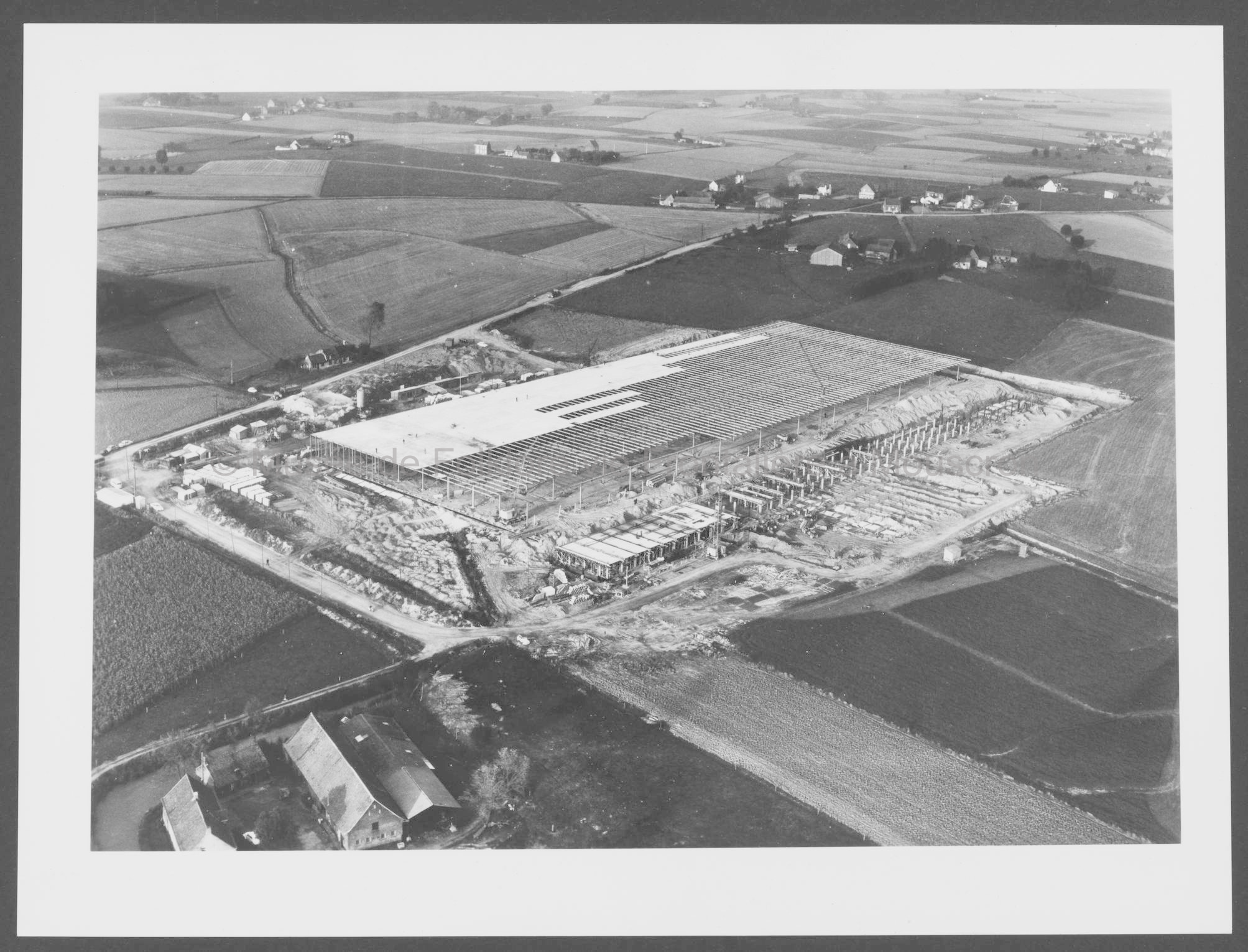 Vues aériennes des bâtiments en construction. Photographies en noir et blanc. Dimensions : 18 x 24 cm.