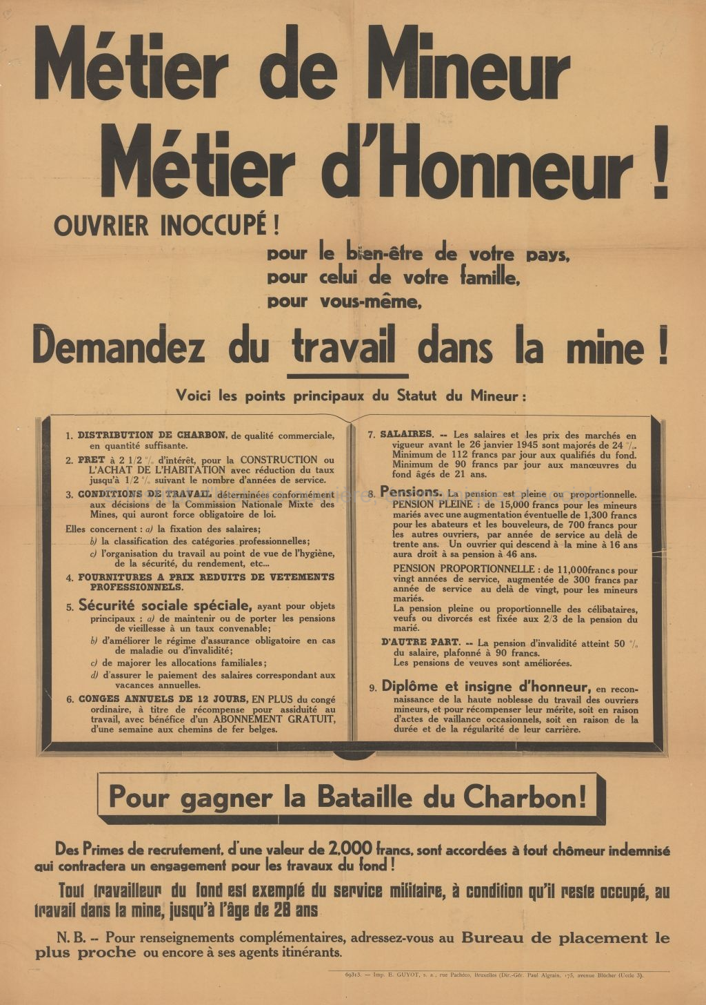 Ouvrier inoccupé ! : pour le bien-être de votre pays, pour celui de votre famille, pour vous-mêmes, demandez du travail dans la mine ! Support : papier. |