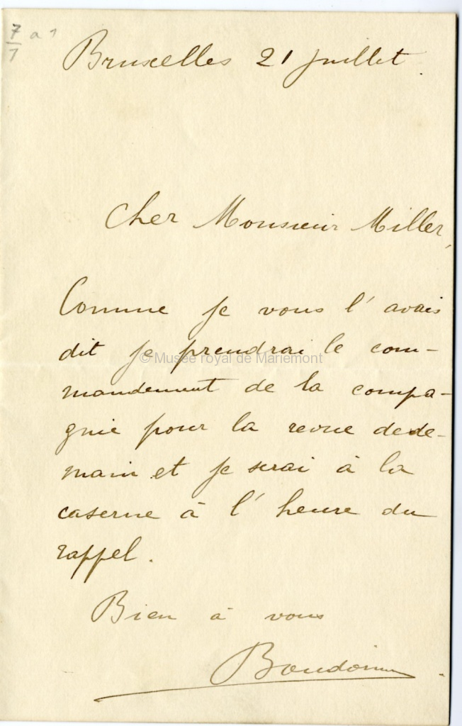 Lettre manuscrite du prince Baudouin à M. Miller |