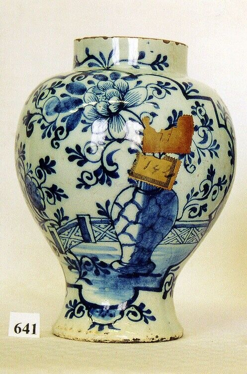 Vase potiche. Dimensions : Diamètre de la base en cm : 8,4 ; Diamètre du col en cm : 7,3 ; Hauteur en cm : 18,7. Matériaux et techniques : Peinture sur émail. |