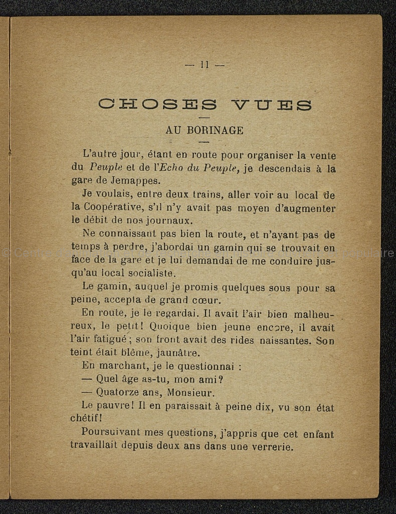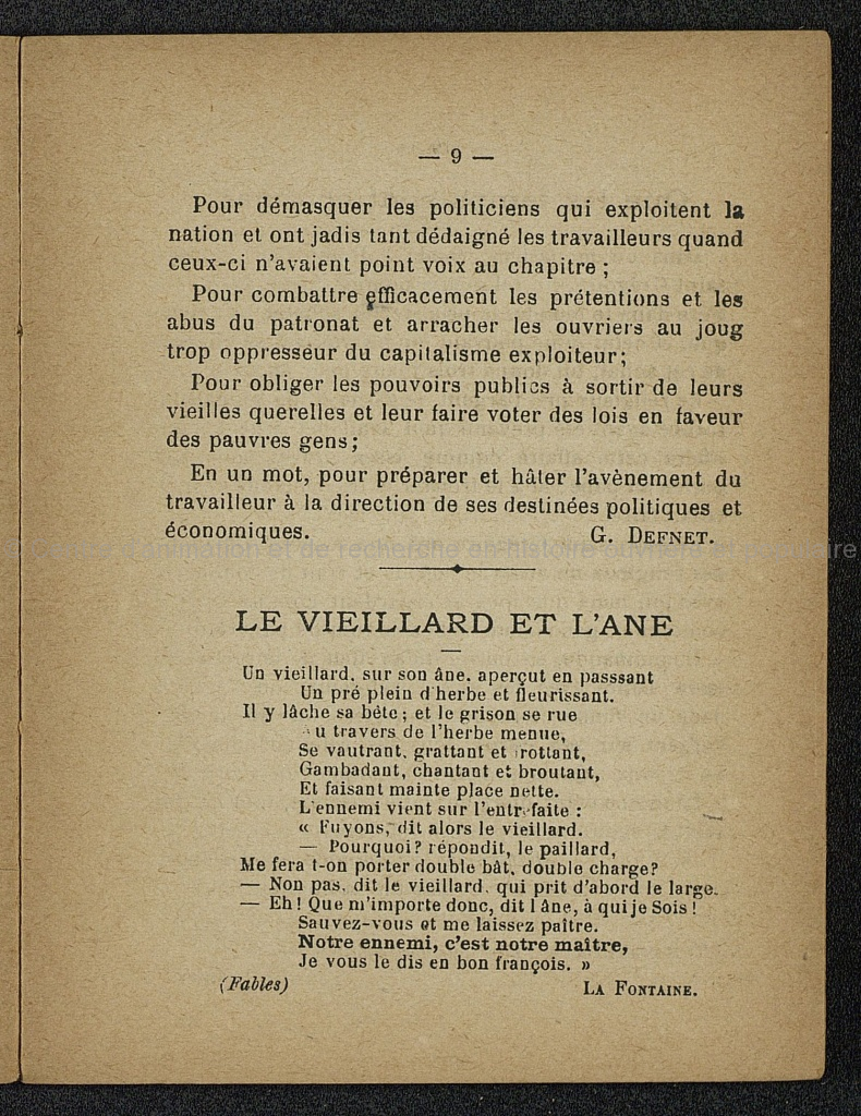 L'hiver; Le printemps; L'été ; L'automne; Les journaux du Parti ouvrier; Le Viellard et l'âne; Que les temps ont changés!; Choses vues au Borinage ; Ceux qui affament; Les premiers chrétiens et l'intérêt du capital; Gand chatiée par Charles-Quint; Les gros bourgeois; Évolution collectiviste; Les faillites aux Etats-Unis; Tous socialistes; Les premiers chrétiens et le communisme; A Benoît Malon; La coopérative de Massenzatico; La propriété et la convention ; La propriété individuelle; L'araignée et la Mouche; Manière de conserver l'oseille pour l'hiver; La mort du père Proudhon; Quels seraient les résultats d'un régime collectiviste?; Les premiers chrétiens et les riches; Recettes utiles; Thomas Morus ( Les cléricaux et la question sociale); Conseils du docteur; Mots de combat; Un évêque communiste; Sociétés coopératives recommandées.